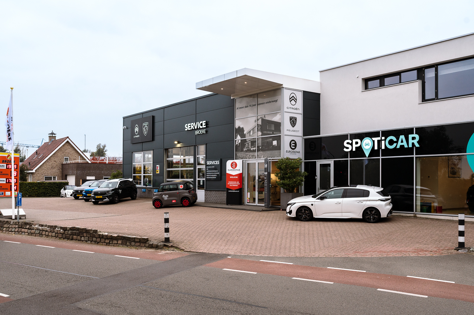 In de moderne werkplaats van Autobedrijf Broere is elke auto in goede handen. Ook is er een wasstraat en bij reparatie kan er naast originele merkonderdelen ook worden gekozen voor voordeliger, maar nog steeds zeer betrouwbare onderdelen. Rombout is enthousiast over het aanbod van Stellantis, het moederbedrijf van ruim tien automerken. “Zij leveren naast originele onderdelen, ook auto-onderdelen onder het universele garagelabel Eurorepar Car Service. Ook dan is kwaliteit gegarandeerd, maar daar hangt dan wel een ander prijskaartje aan. Soms zeker het overwegen waard en bij ons is de klant verzekerd van een goed advies. Natuurlijk zorgen wij indien gewenst voor vervangend vervoer. Naast een fiets of een auto kan de klant kiezen voor de Citroën Ami, een 45 km brommobiel.”